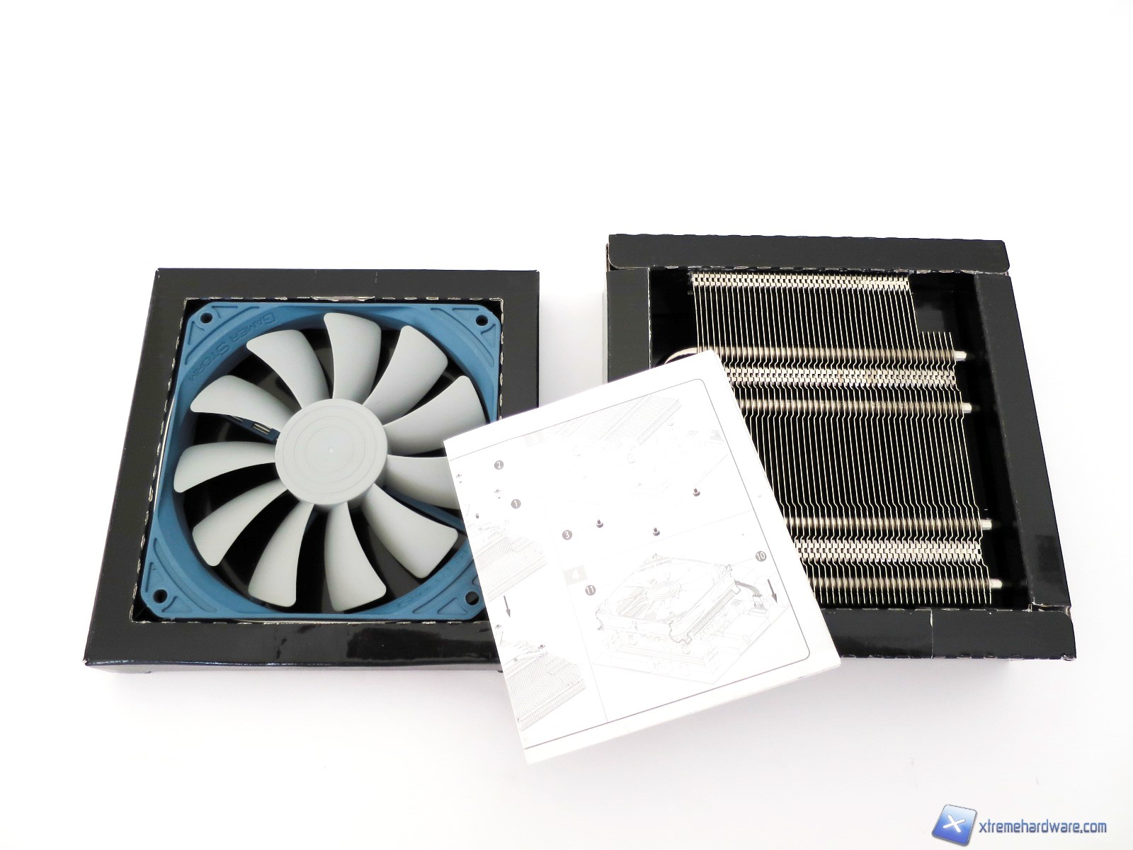 Le due aree o scomparti della confezione ospitano rispettivamente la ventola ed il dissipatore con il suo bundle.