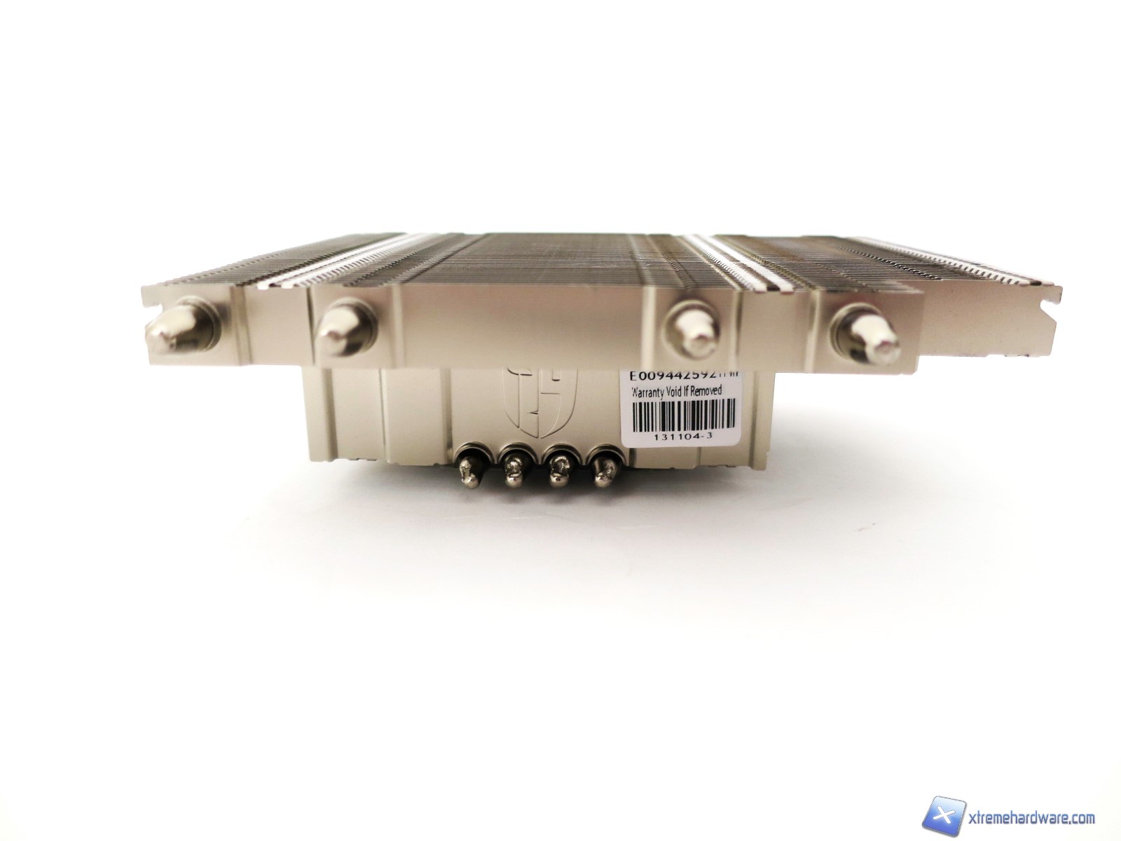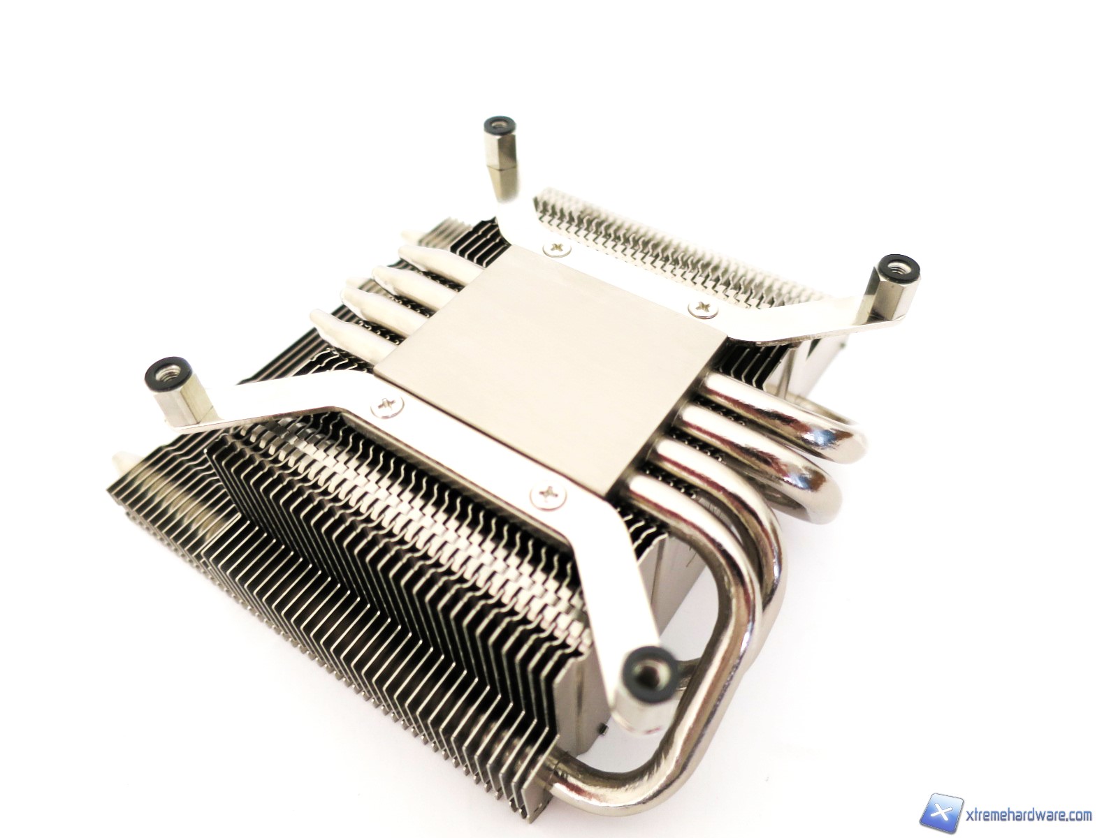 In questo caso DeepCool non ha utilizzato la tecnologia HDT (Heatpipe Direct Touch) ma si affida a delle heatpipe che attraversano internamente la base di contatto. Questa scelta per certi versi è anche migliore in quanto permette di avere una base di contatto più vasta e planare rispetto ad un dissipatore HDT dove sono presenti comunque degli interstizi che potrebbero creare delle discrepanze nello scambio termico. DeepCool comunque per la base di contatto ha fatto un buon lavoro rendendo la base ad occhio planare evitando quindi successivi problemi di cattivo trasferimento di calore. La base è rifinita molto bene anche se non è stata lappata a specchio. Ricordiamo comunque che il DeepCool Gabriel è un dissipatore per sistemi a basso consumo quali possono essere HTPC, NAS DIY e così via. Ovviamente la base di contatto appena estratto il dissipatore dalla confezione è protetta da un film in plastica per prevenire graffi ed eventuali problemi.