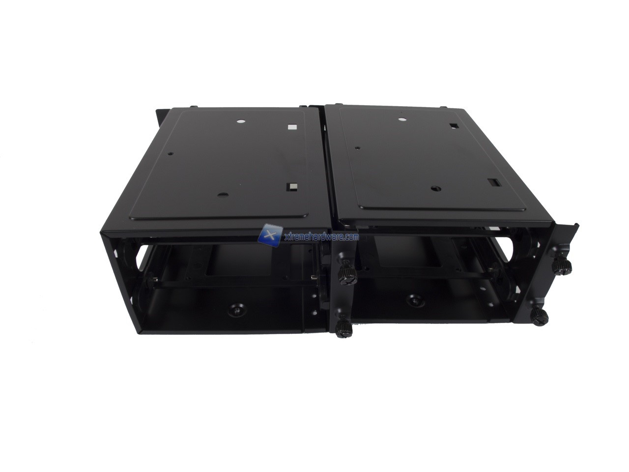 Noterete anche come tutti i supporti o Cage che essi siano sono tenuti in sede da una serie di viti Tool-Less. Questo ci permetterà di rimuovere il superfluo per la nostra configurazione e ottimizzare gli spazi e alloggiamenti. Osservare anche come a lato Tray avremo una serie di fori, come visto per i Cooler Master MasterCase 5 e Pro.