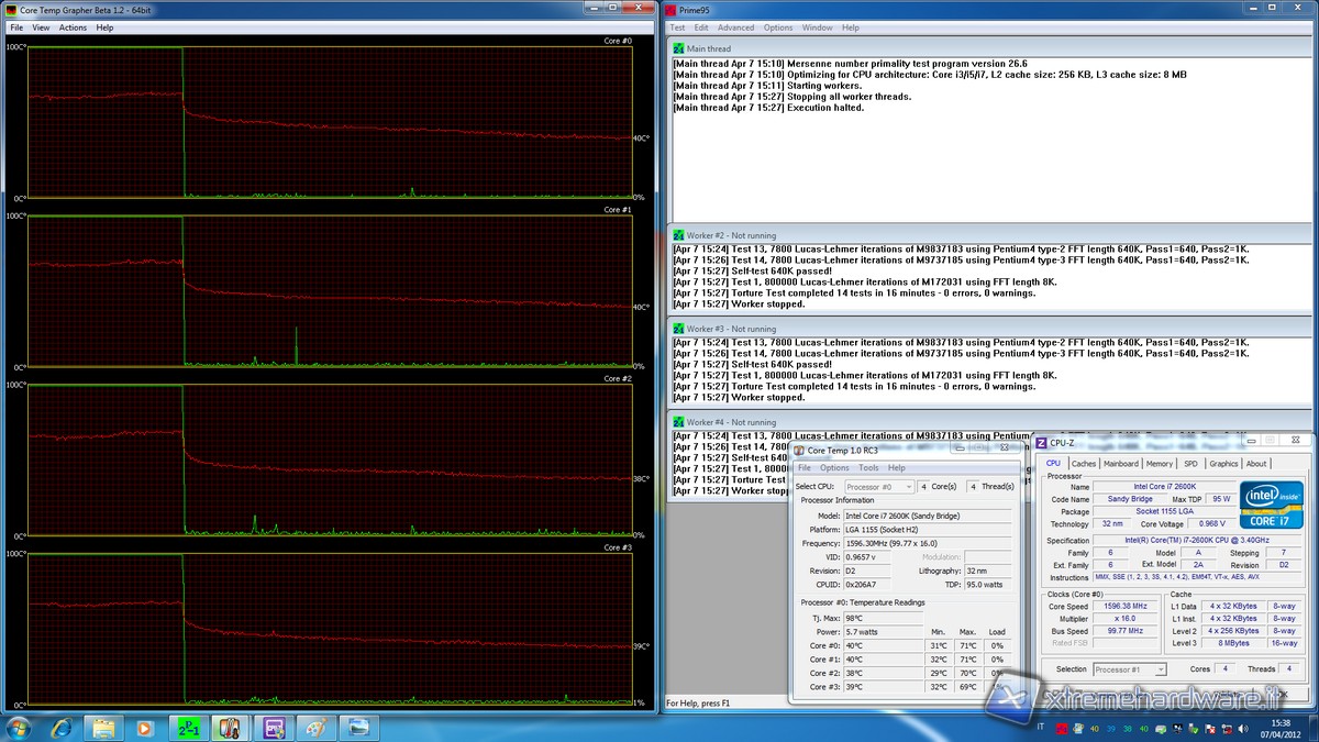 Una volta fermato il test con Prime95 occorono più di 10 min. affinchè le temperature tornino in una situazione di norma, rispetto quindi al caso precedente un tempo circa doppio.