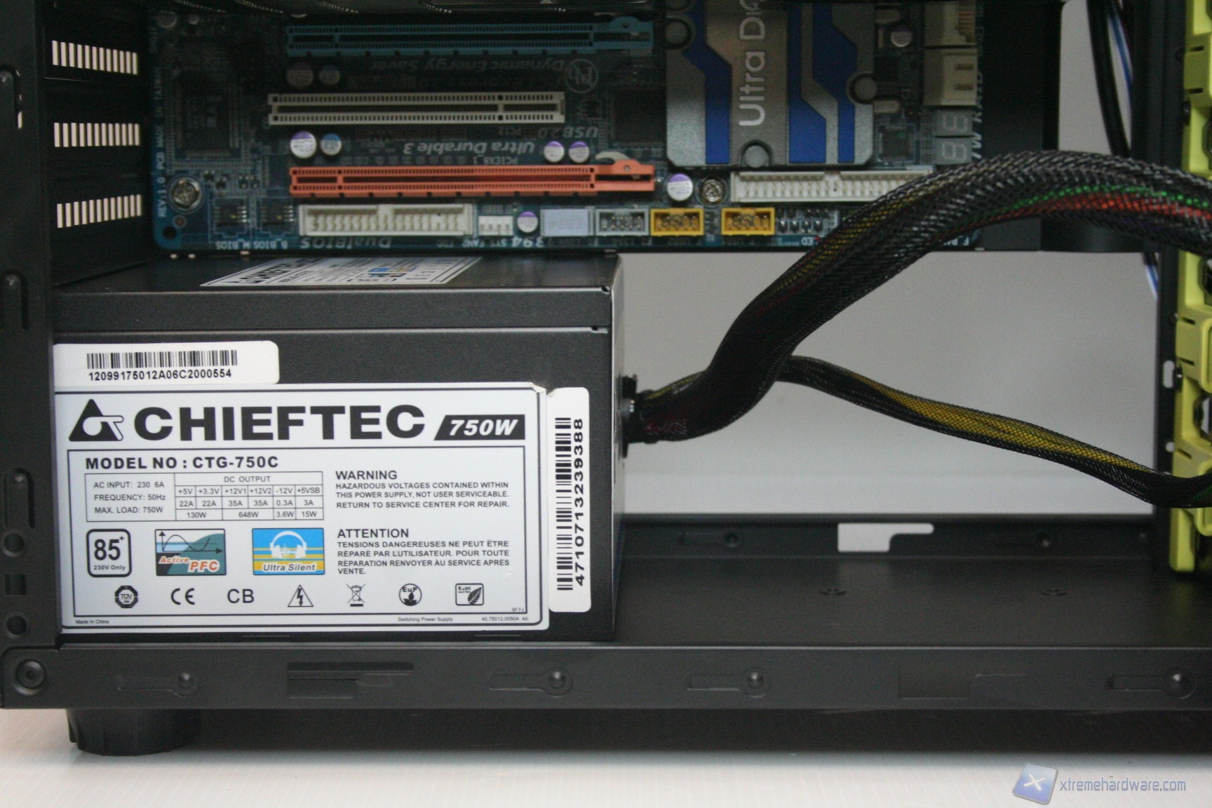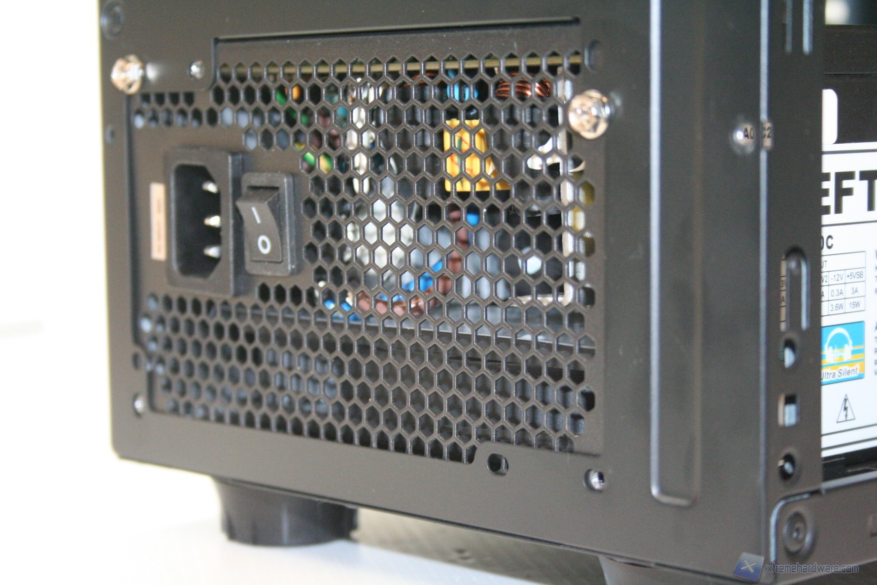 Il posizionamento dell’alimentatore è classico, quindi nella parte inferiore e posteriore dello chassis. Sono presenti quattro distanziatori gommati antivibrazione e la lunghezza massima consentita è fondamentalmente irrilevante, dato che potete installare anche i modelli più lunghi in commercio. Non c’è la predisposizione per un sistema a doppio alimentatore ridondante però. L’alimentatore si inserisce facilmente ed il fissaggio avviene tramite consuete viti filettate posteriori. Il cablaggio è discreto.