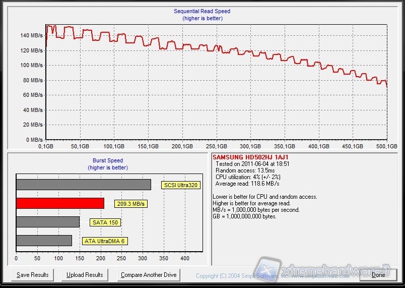 I software che abbiamo scelto sono HD Tune, Atto Disk Benchmark, HD Tach. Di seguito potete leggere i risultati ottenuti usando le varie suite. Come possibile notare dai grafici sotto esposti le prestazioni del disco sono interamente sfruttate e non abbiamo nessun limite di prestazioni dovuti al chipset o altri fattori esterni.