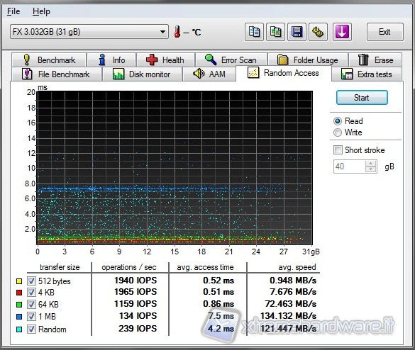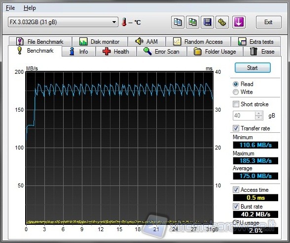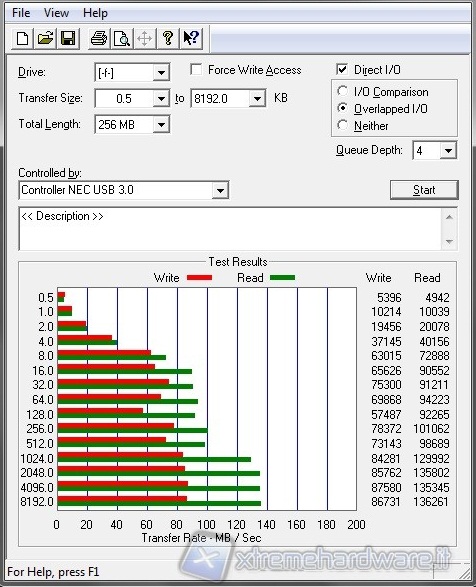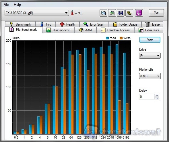 Per i test USB 3.0 abbiamo scelto un pen drive prodotto da Mach Xtreme da 32GB, si tratta del modello MX-FX32 con interfaccia di connessione di ultima generazione. Anche in questo caso abbiamo scelto i medesimi benchmark visti in precedenza e come possibile vedere dalle varie schermate che abbiamo effettuato le prestazioni e le potenzialità del pen drive di nuova generazione vengono sfruttate per intero. Segno che tutto funziona in modo egregio.